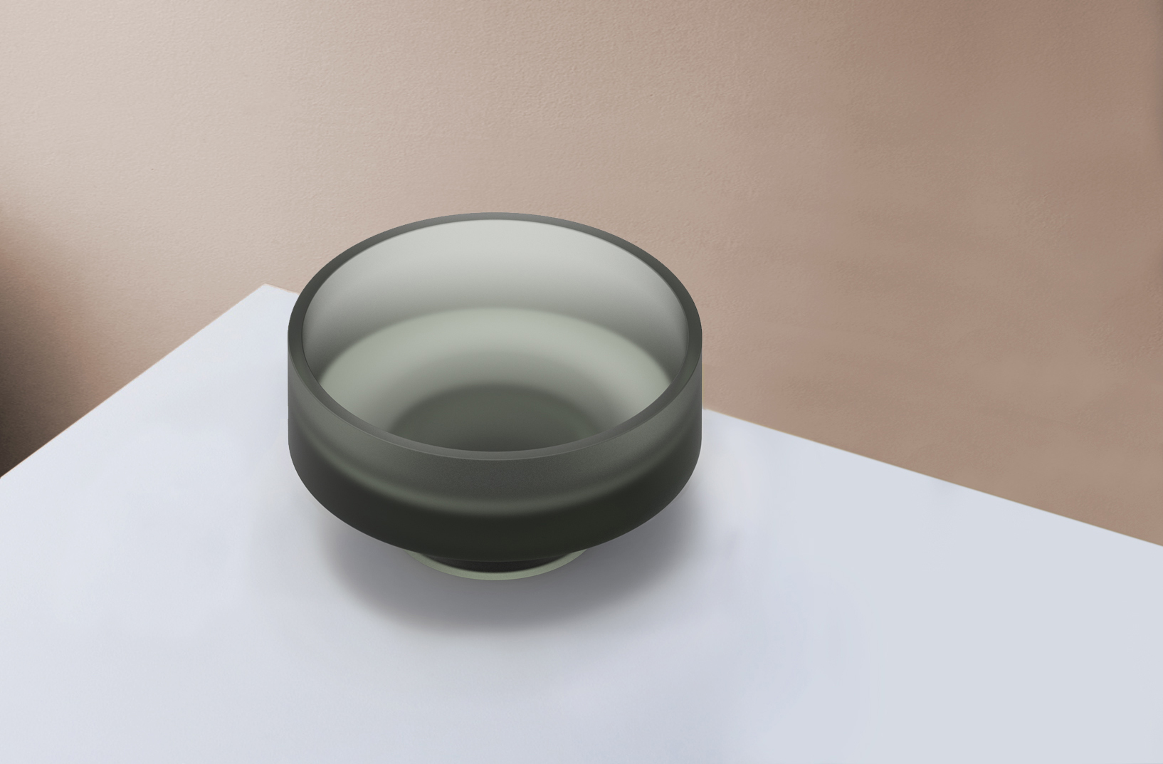 With the Byro collection we wanted to use frosted glass potential for bringing shades of colours of the fruit bowl to life, by playing around with the inner and outer shape. We designed 4 different colours which can be used in combinations, to give surfaces volume and depth.